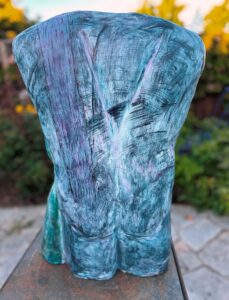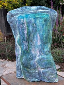 cast stone, steel support, patina